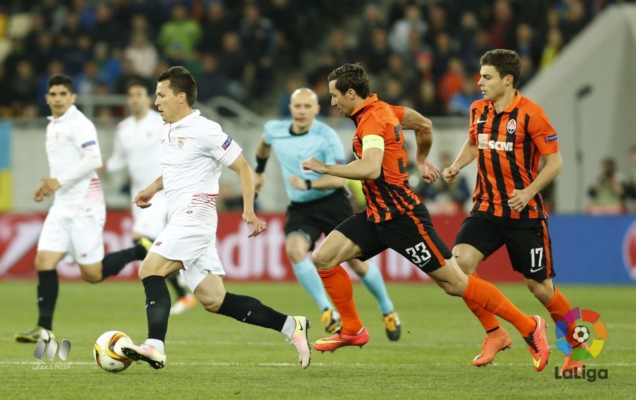 Emery will have to make do without the services of Danish midfielder Michael Krohn-Dehli, who sustained a serious injury during the first leg, and home-grown veteran Jose Antonio Reyes. Shakhtar manager Mircea Lucescu, meanwhile, headed to Seville without the injured Marcio Azevedo and the suspended Fred.